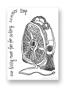 In retrospect, I probably wouldn’t do so much cross-hatch style shading on the fan’s support. However, that exercise helped me with a later card, and I try not to get stuck in making everything just so.