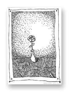 One of my best friends (and classmates), Laura Whipple, and I both drew flowers for a class assignment. Like me, Laura favored pen-and-ink drawings with lots of detail and sometimes “dotty” shadowing.