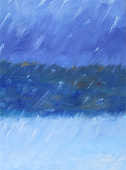 After painting the paneled piece, I wanted to capture the more monochromatic imagery after the sky darkened but before we were in nearly white-out conditions.